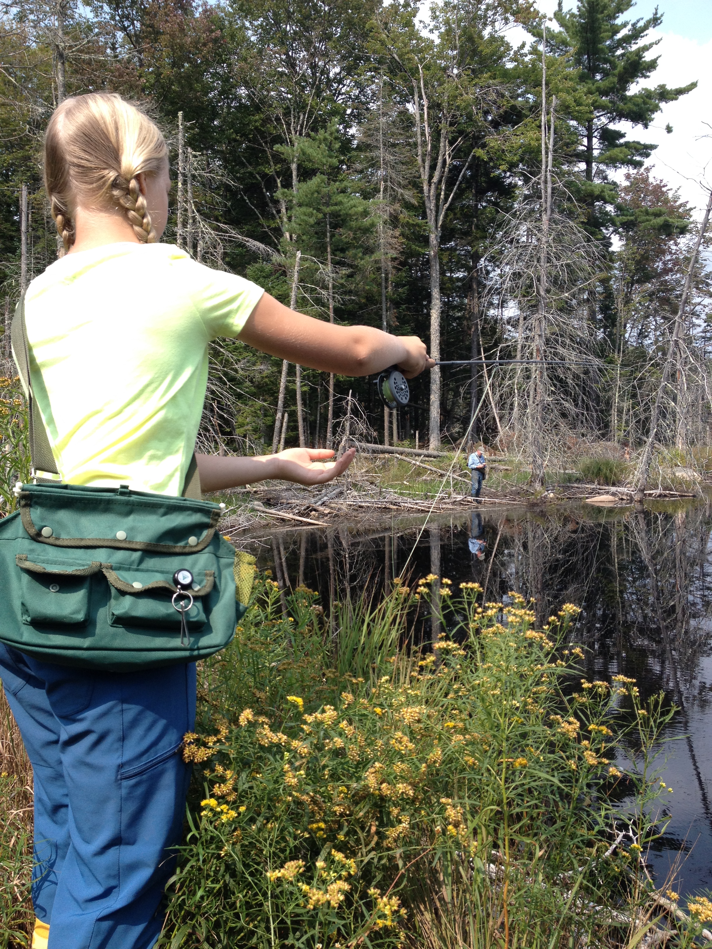 Yesterday, I was standing on an abandoned beaver house, several miles deep in the WIld (the Adirondacks), teaching my daughter to fly fish in the ungroomed conditions of a totally wild beaver pond. (aside — right now, at least two of my friends are asking ‘where was I, Cameron?’ with blood in their eyes…)